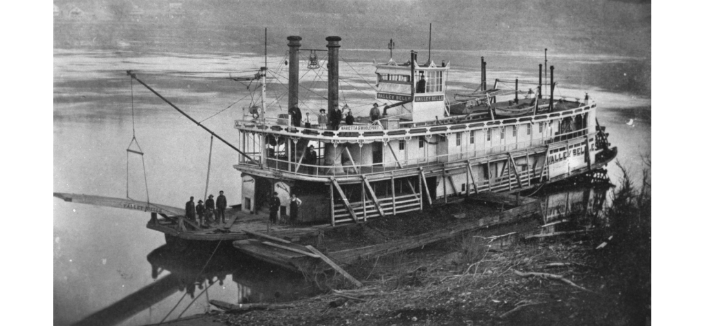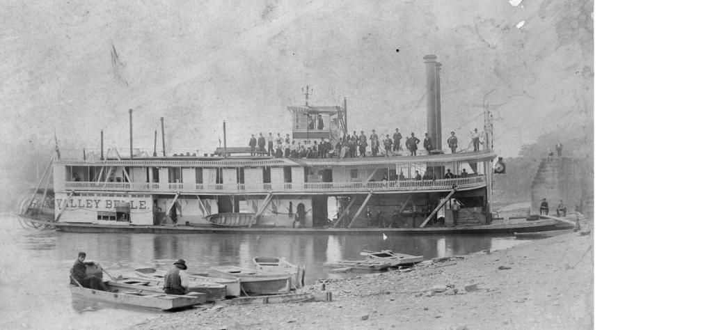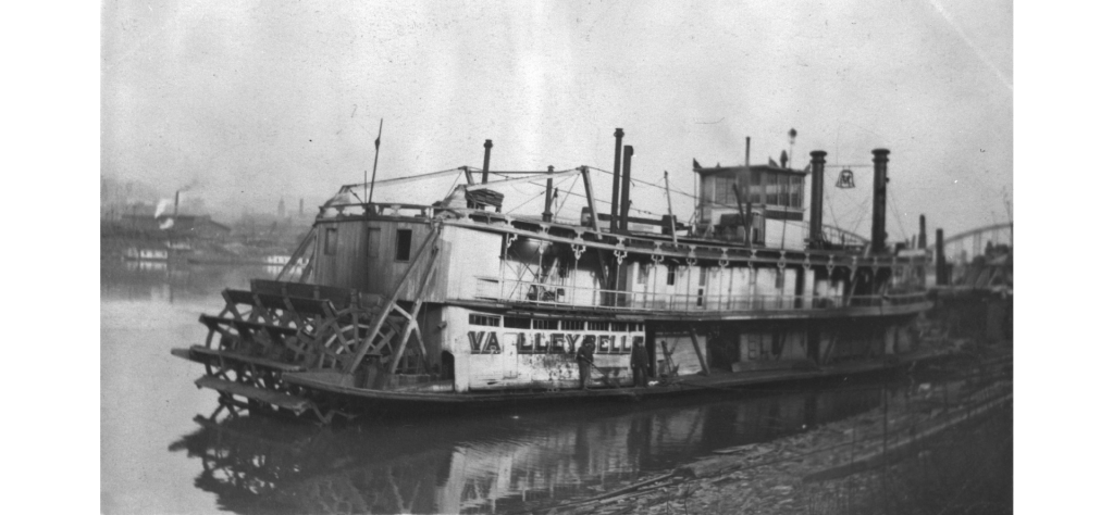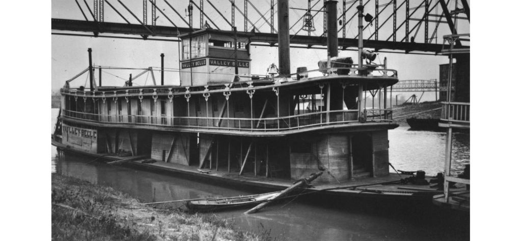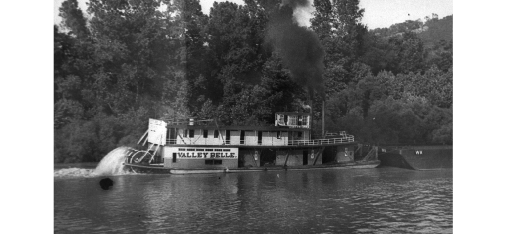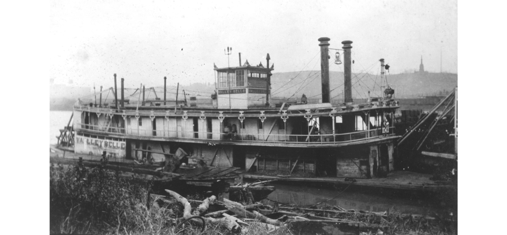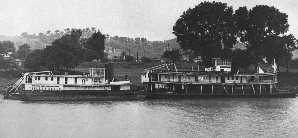 The VALLEY BELLE had been a Sternwheel Towboat/Packet. She was built in 1883 at Harmar, Ohio at the Knox Yard for the Marietta-Beverly trade on the Muskingum River. She sank at Kanauga, Ohio in 1943 and was dismantled.