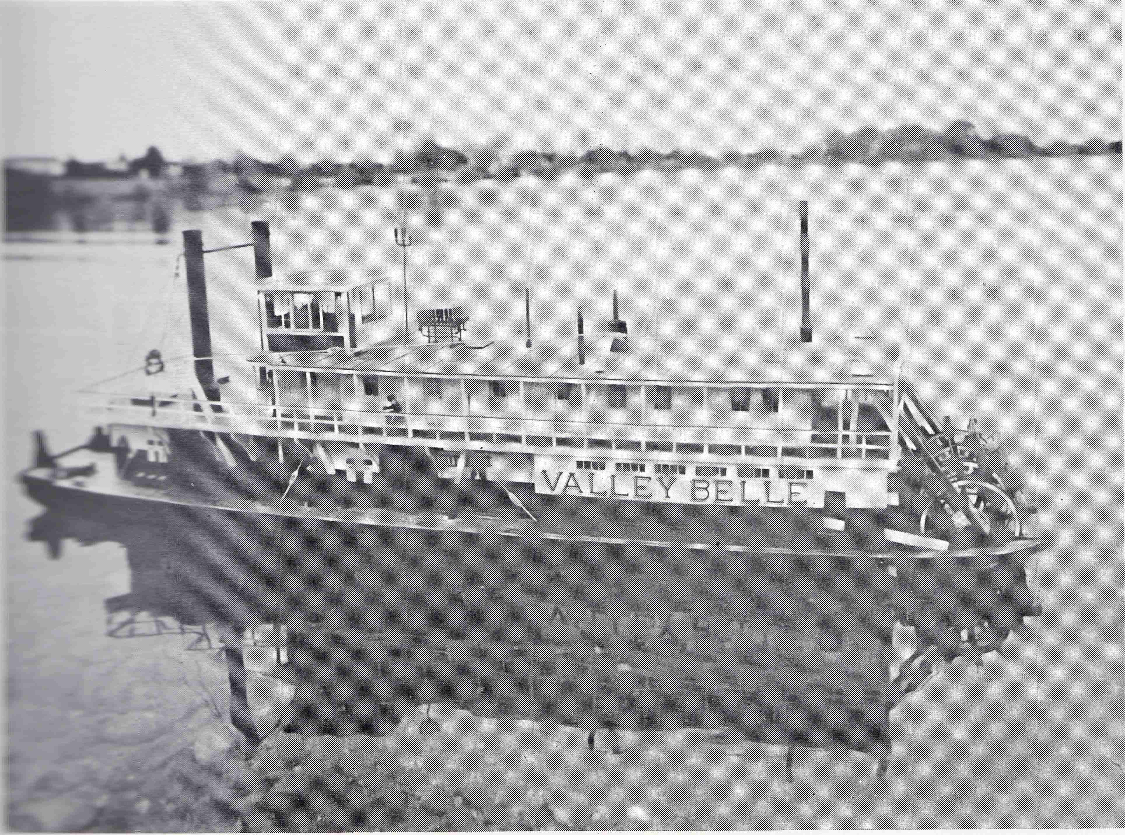 1943 the VALLEY BELLE sank in Kanauga, Ohio. The VALLEY BELLE did not have any accident in her 60 year life on the Ohio River. That`s a unique record in the history of Mississippi Steamboats.